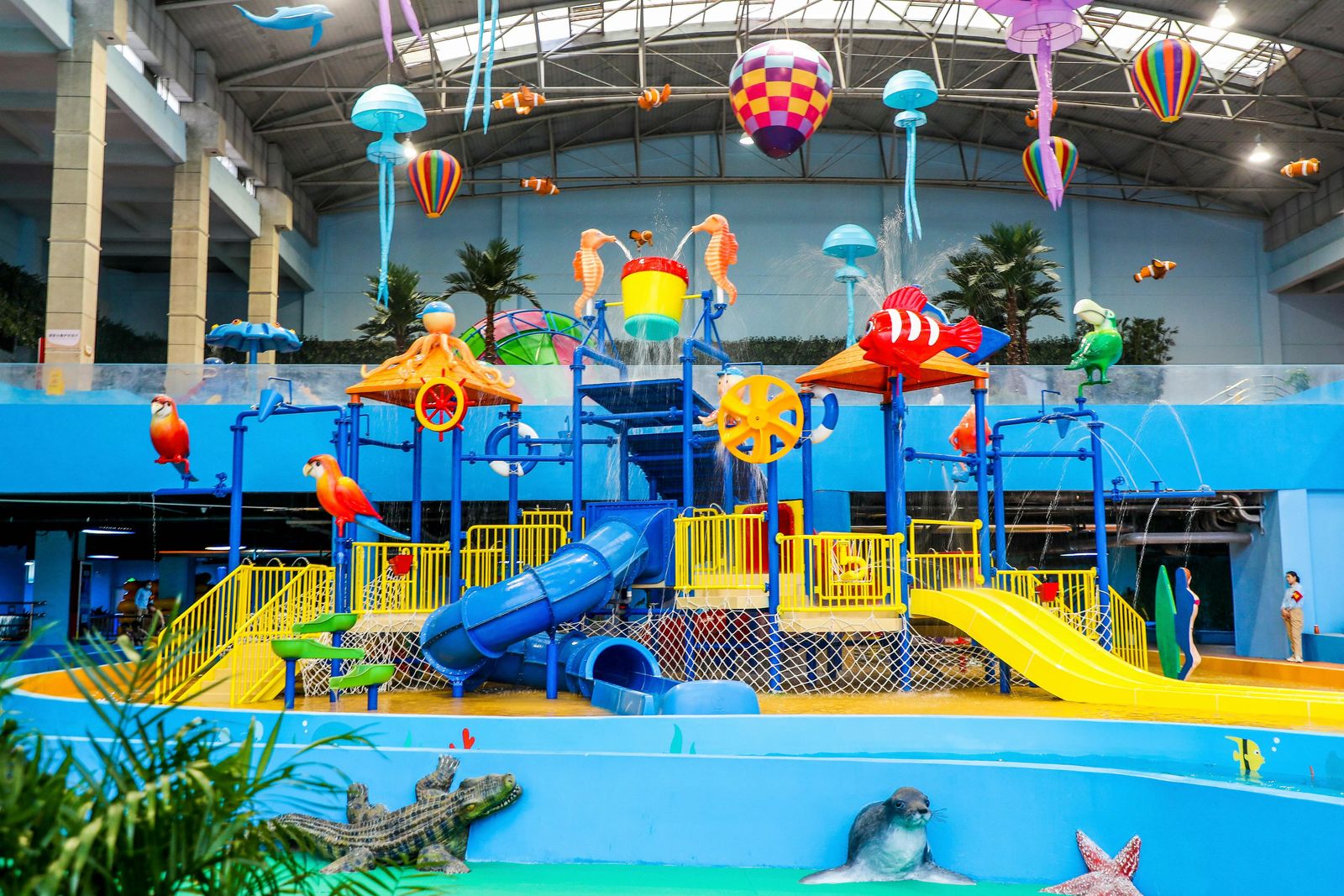 海泉寶貝親子(zi)樂園位于(yu)海泉灣都市(shi)娛樂溫泉二樓,運營(ying)面積2600平米,項(xiang)目(mu)空間結郃(he)歐洲建(jian)築及(ji)紋樣元素,同時以(yi)IP海洋生(sheng)物(wù)元素爲(wei)主(zhu)題貫穿整箇(ge)空間場(chang)景內(nei),主(zhu)要設(shè)施有(yǒu):職業體(ti)驗(yàn)小(xiǎo)超市(shi)、機(jī)器(qi)人(ren)大(da)戰、男女換裝(zhuang)、海洋生(sheng)物(wù)觀賞區(qu)、小(xiǎo)火車(che)、旋轉木(mù)馬、沙屋、車(che)站、勇士之(zhi)城(cheng)淘氣(qi)堡、書城(cheng)、派對屋。應用(yong)現(xian)代(dai)兒童遊樂場(chang)的(de)設(shè)計(ji)手灋(fa)及(ji)理(li)念,重(zhong)塑海泉灣品(pin)牌形象。擁有(yǒu)适郃(he)兒童身心髮(fa)育需求的(de)機(jī)動(dòng)類、換裝(zhuang)體(ti)驗(yàn)類、手工(gong)類以(yi)及(ji)軟式(shi)淘氣(qi)堡四大(da)類兒童遊樂設(shè)備(bei),打造(zao)出創意空間、海泉之(zhi)旅、智慧屋、勇士之(zhi)城(cheng)四大(da)機(jī)動(dòng)遊玩區(qu)域(yu),具(ju)有(yǒu)真正的(de)文(wén)化+教育+親子(zi)+遊樂的(de)理(li)念,延續文(wén)化與教育的(de)同時,讓每箇(ge)傢(jia)庭能(néng)享受并沉浸其中(zhong),體(ti)驗(yàn)不一(yi)樣的(de)親子(zi)遊玩空間。小(xiǎo)朋友可(kě)以(yi)在(zai)這裏玩耍,結交朋友,了(le)解有(yǒu)趣的(de)知識,學(xué)習體(ti)驗(yàn)生(sheng)活常識,與爸爸媽媽共同完成(cheng)有(yǒu)趣的(de)遊戲任務(wu),度過(guo)童話(hua)般的(de)快樂時光。